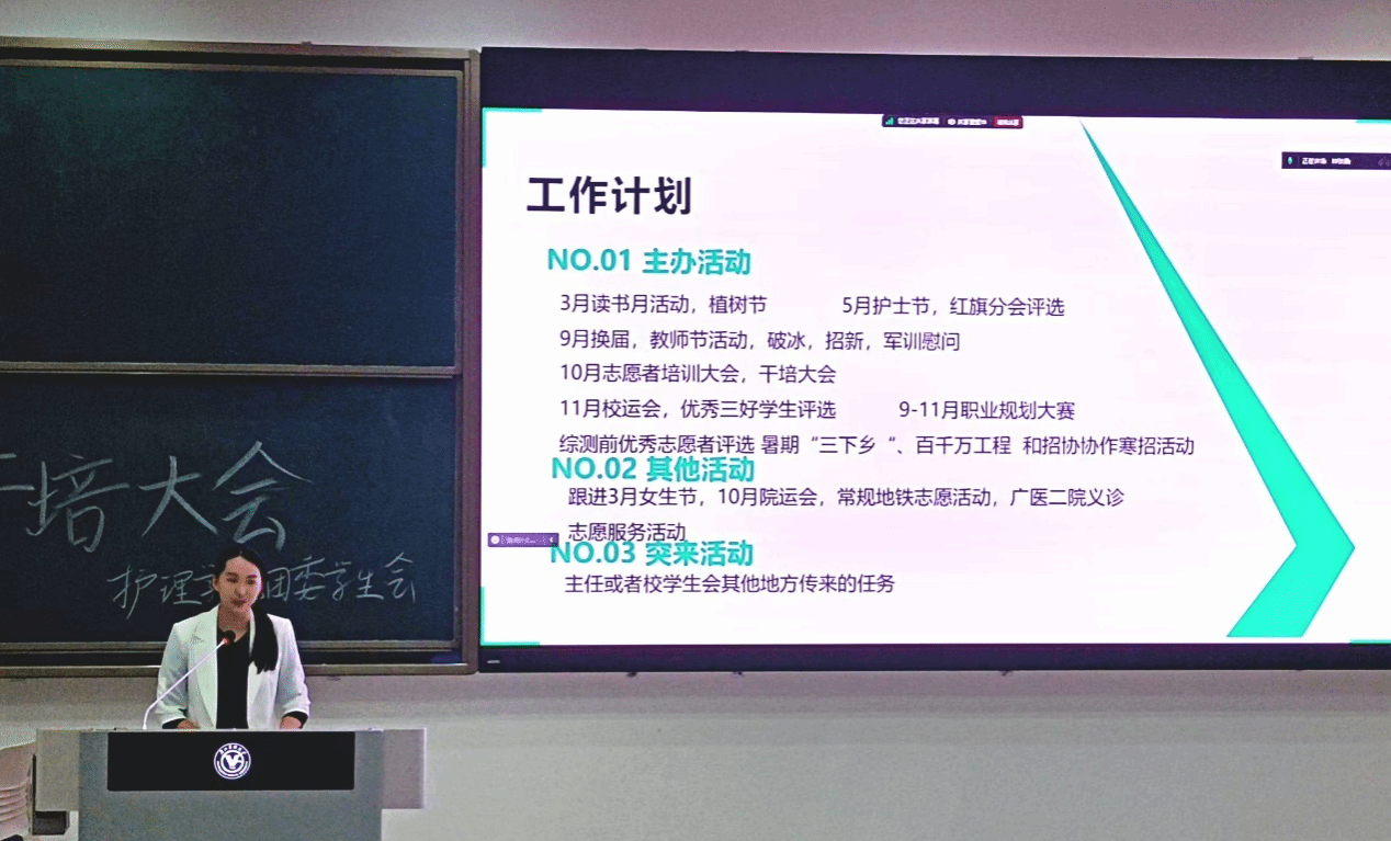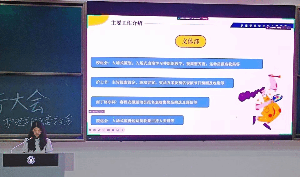 欧丽娅主任以“学思践悟强本领,砥砺前行勇担当”为主题,对部长们进行了团委学生会工作要点的分析、工作方式方法的培训,并与干部们讨论了如何更好地推进落实本学期的重要活动与活动推进中的注意事项,对各部门所出现的问题进行释疑解惑。