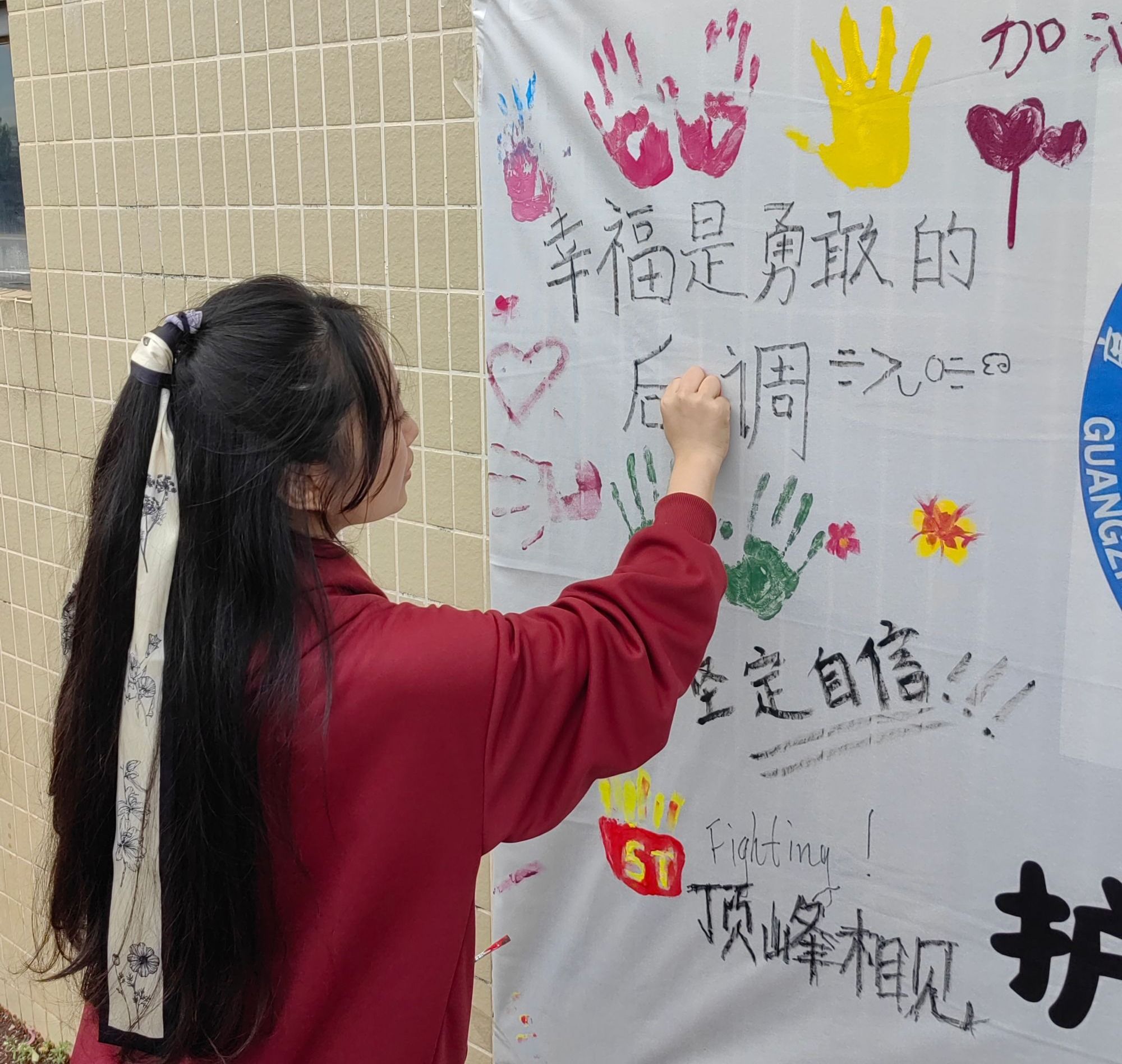 每一个手印,每一抹色彩,每一句文字,都是护院学子全体的心声。