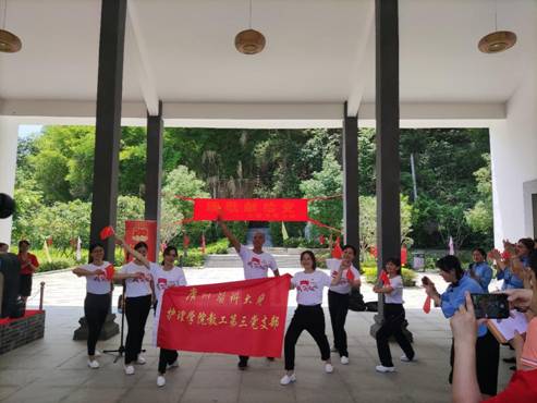 为落实党史学习教育要求,铭记革命历史,传承红色基因,根据kaiyun开云官方网站党总支党史学习教育主题系列活动方案安排,结合学校“颂歌献给党”红色歌曲传唱活动要求,5月22日,kaiyun开云官方网站党总支前往惠州市龙门县低冚村红色革命教育基地参观并组织红歌传唱比赛活动,参加人员包括kaiyun开云官方网站全体教工党员、研究生和本科生党员、入党积极分子等53人,黄健清副校长参加活动并现场讲授党课。