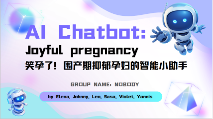 作为本次交流的核心项目,Chatbot的设计与展示凝聚了团队的全部心血。由kaiyun开云官方网站、西安交通大学、广州中医药大学、遵义中医药大学及澳门镜湖kaiyun开云官方网站同学共同组成的“Nobody小组”,在跨地域协作中碰撞出思维火花。团队聚焦“围产期抑郁产妇”群体,设计了名为“Joyful pregnancy/笑孕了”的AI Chatbot。该智能助手设计颇具巧思:既能提供涵盖饮食调理、适宜运动、心理疏导等个性化方案,还能贴心设置提醒闹钟督促产妇坚持干预;加入的长效评估机制可动态追踪效果,确保干预的持续性。从功能框架搭建到细节打磨,每一步都凝聚着团队智慧:有人负责调研数据,有人优化交互逻辑,广医学子作为核心功能的设计者与汇报者,始终致力于让解决方案更贴合产妇需求。
