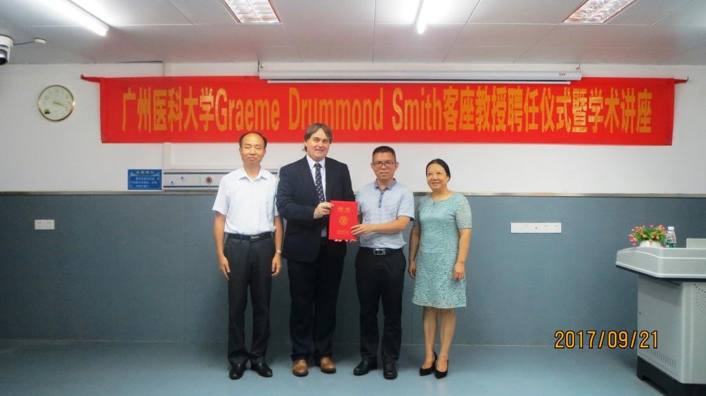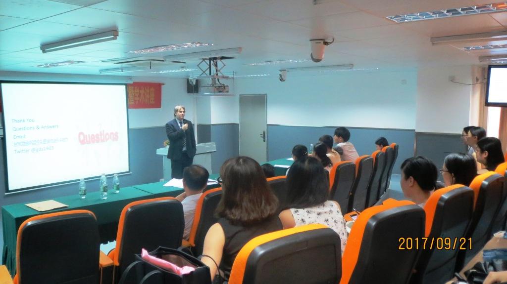 2017年9月21日下午,英国爱丁堡龙比亚大学Graeme Drummond Smith教授受聘开云客座教授仪式在越秀校区10号楼1020示教室举行。kaiyun开云官方网站周英副院长主持了聘任仪式。学校人事处方少元副处长向Smith教授颁发了聘书。随后,Smith教授作了题为《Nursing Education in UK》的学术讲座,介绍了英国护理教育的概况、护理学研究方向以及护理研究生培养等问题。Smith教授还与师生就中英护理教育对比、英国留学、护理学论文发表等问题进行了深入交流。此次讲座促进了开云学生对英国护理教育的了解,加强了中英护理教育交流,受到了师生们的一致好评。